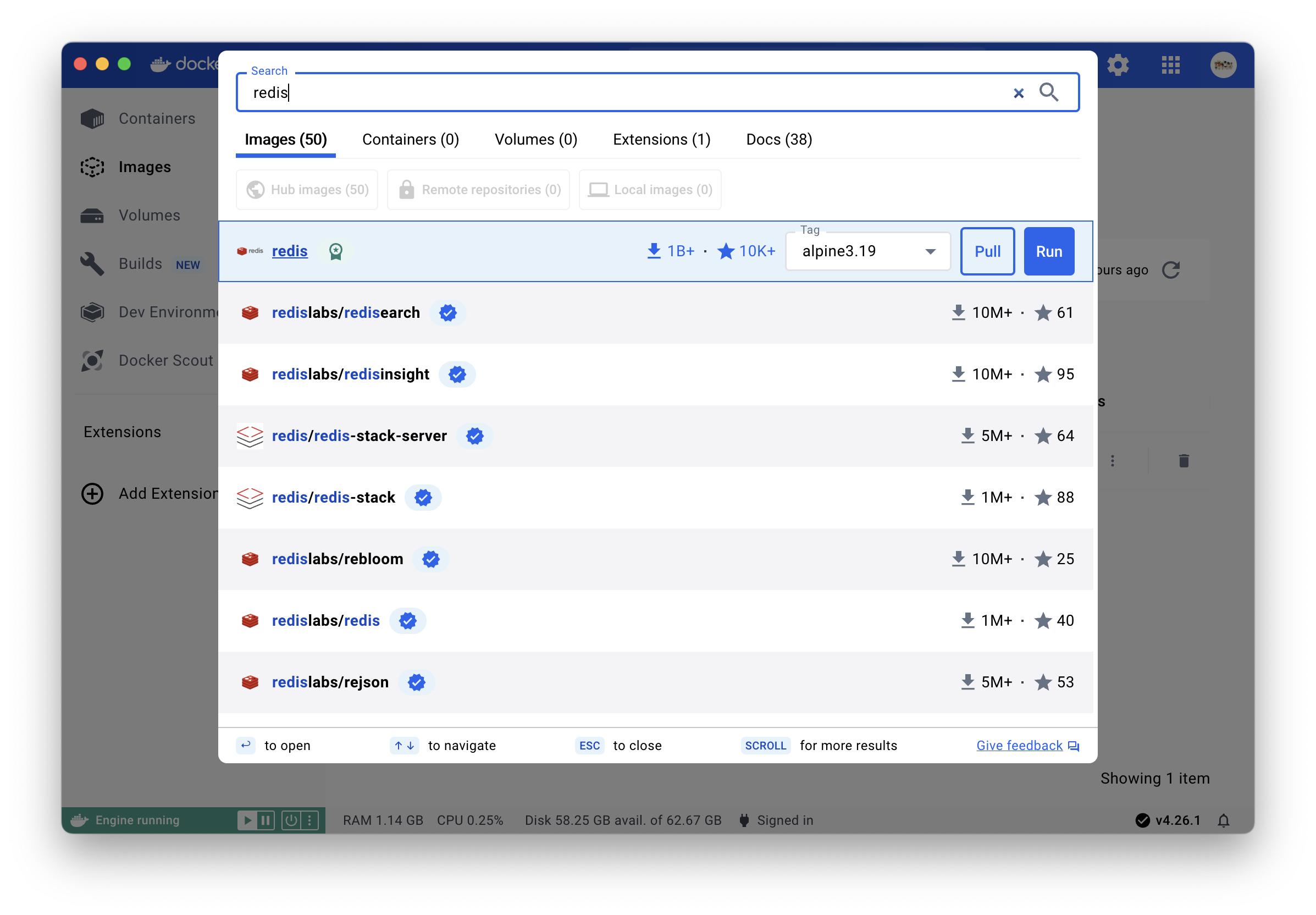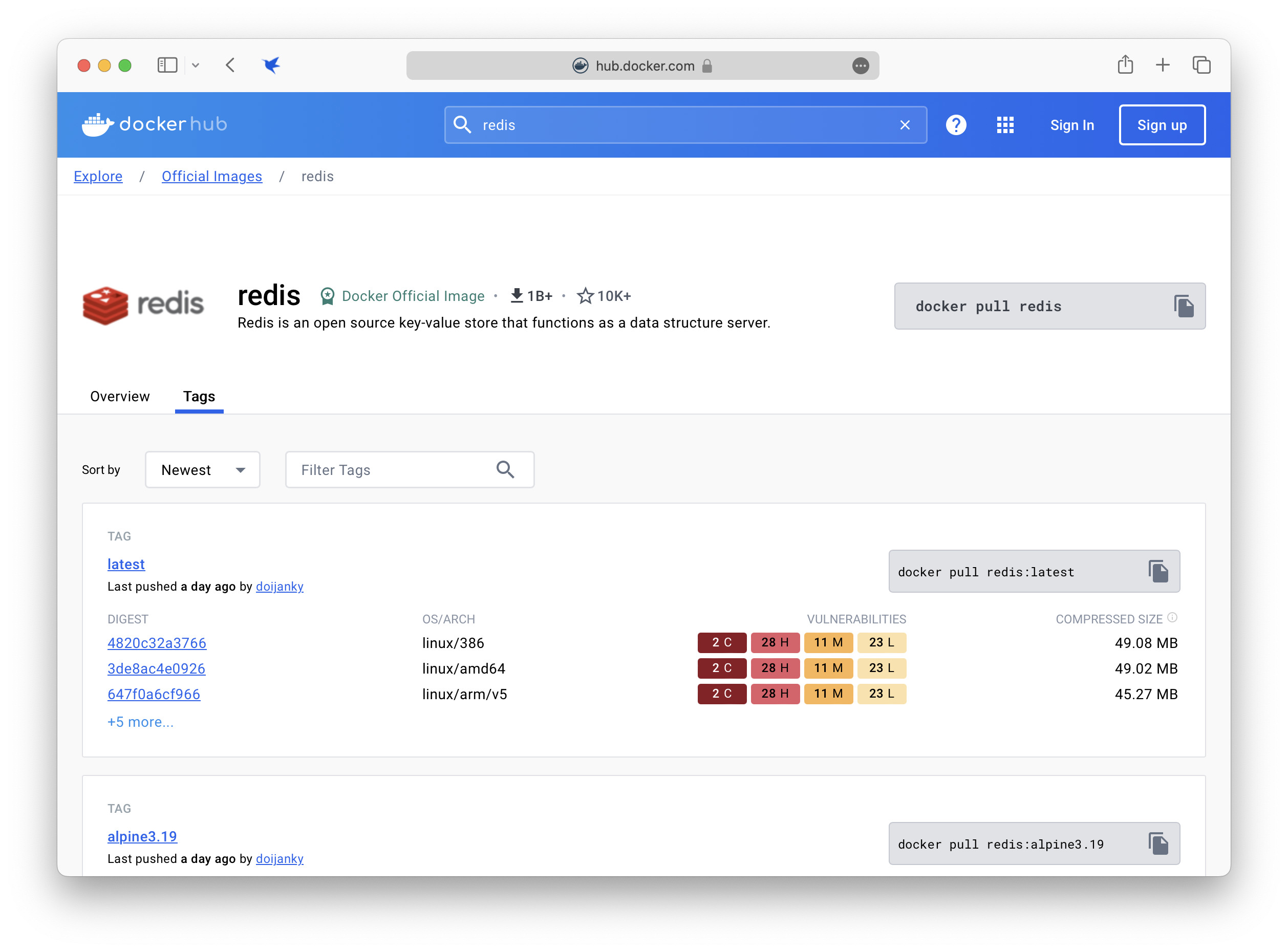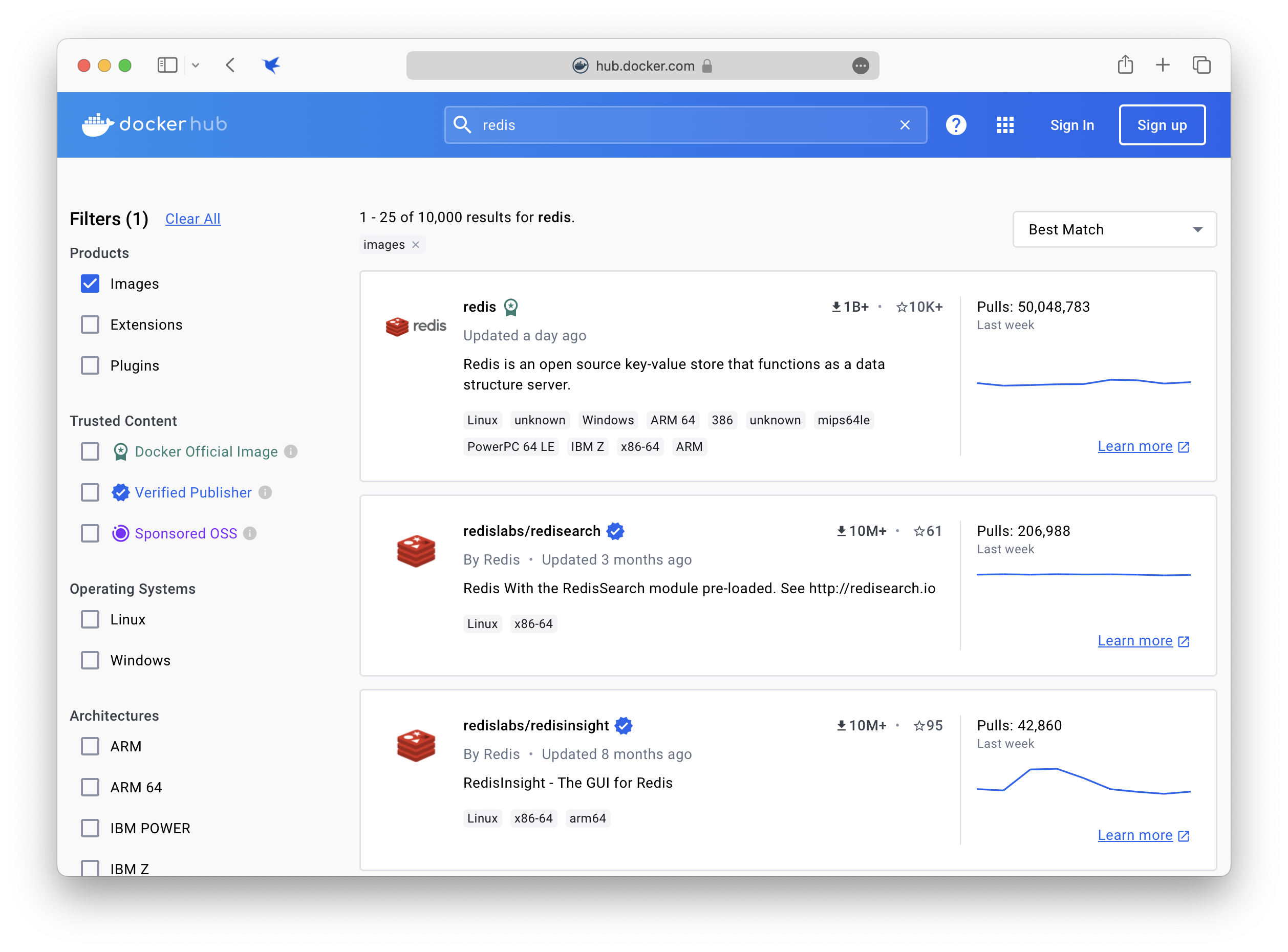 使用 Docker Hub 中提供的查找功能:https://hub.docker.com/search?q=redis&type=image
