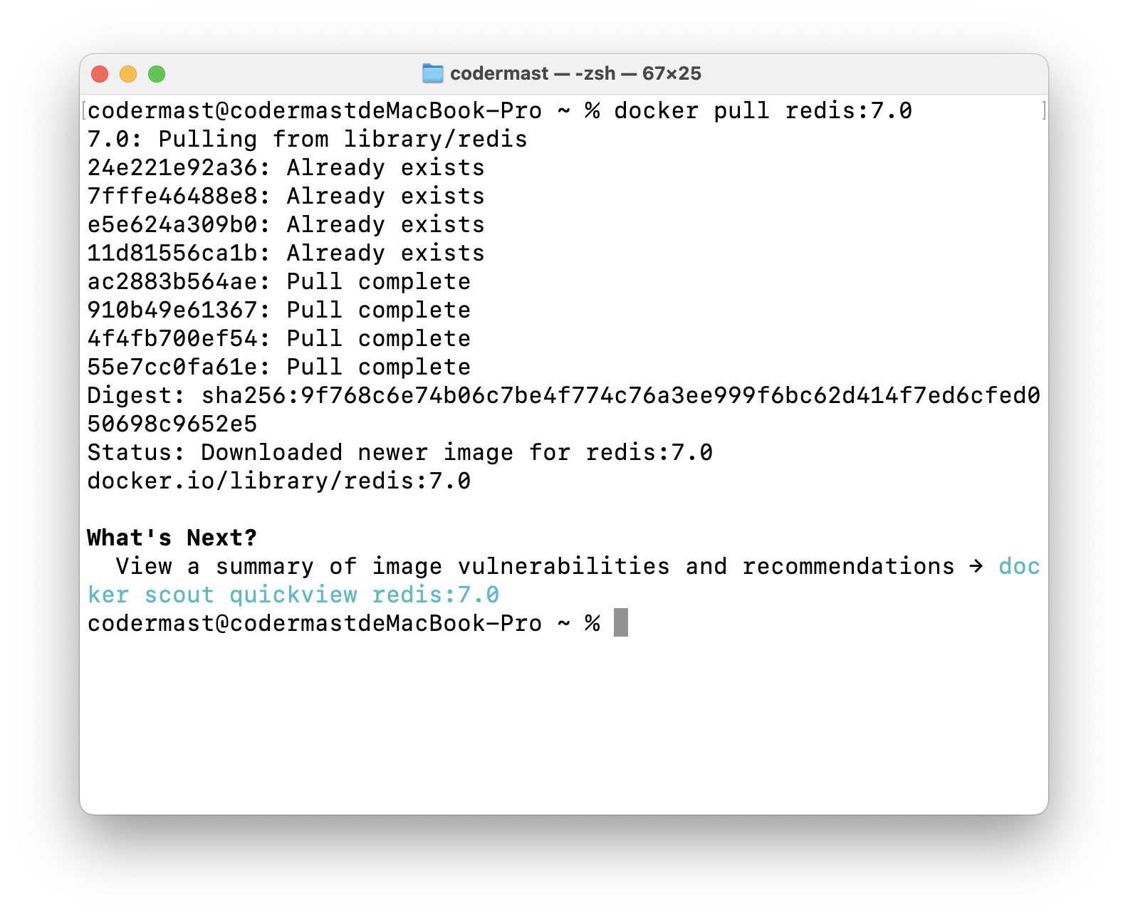 这里默认拉取的是 Redis 的最新版本,如果要是想拉取指定版本时可以进行如下执行,如拉取 redis7.0