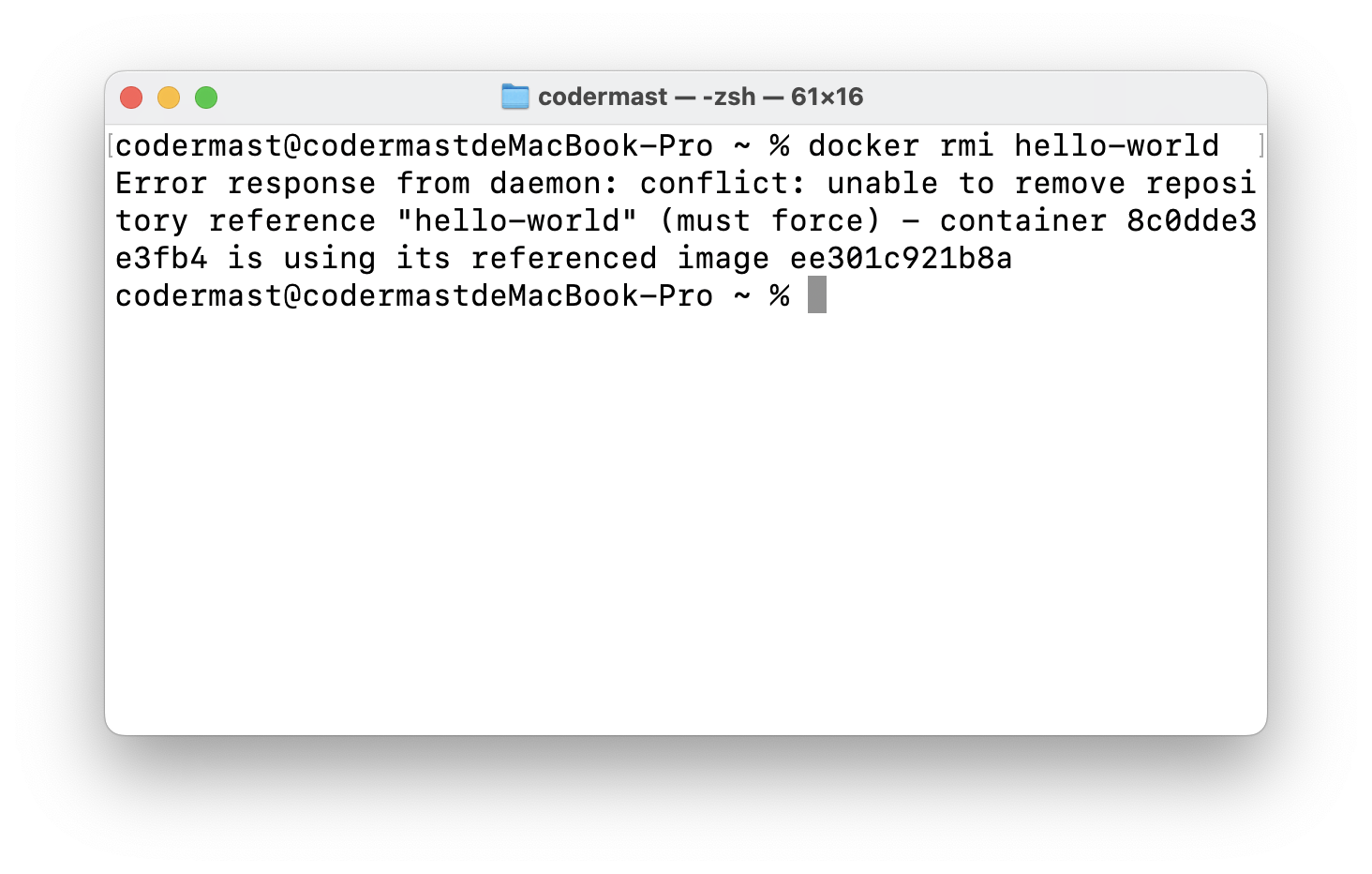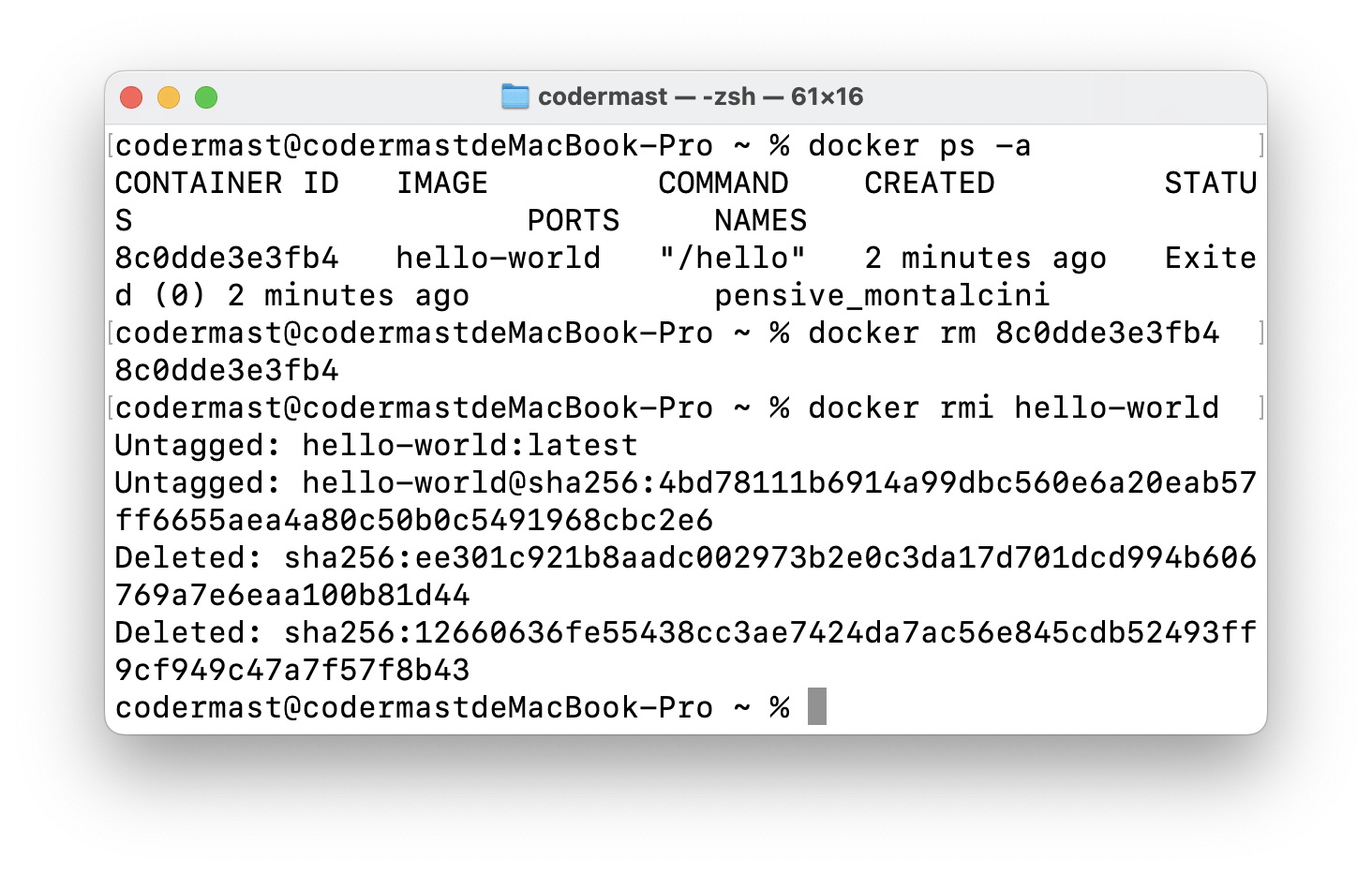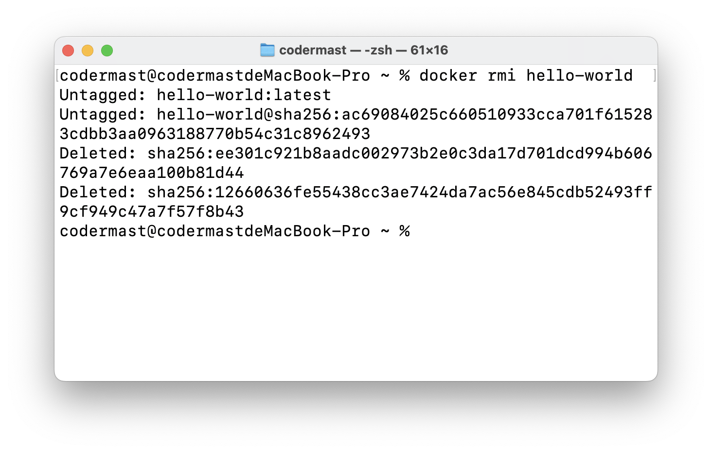 这里我们演示删除之前下载的那个 Hello-World 镜像