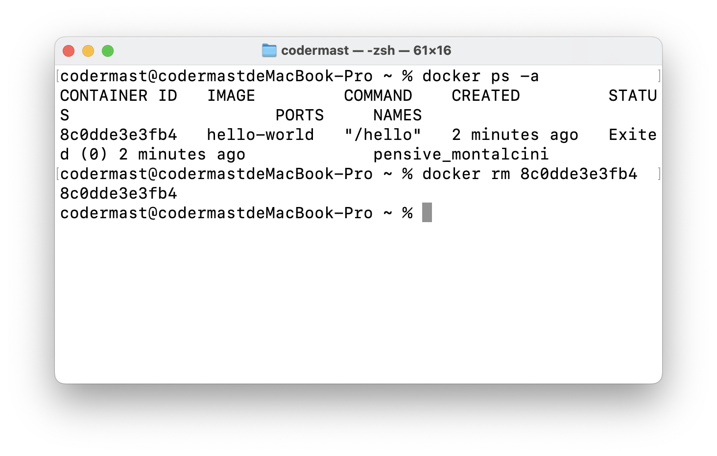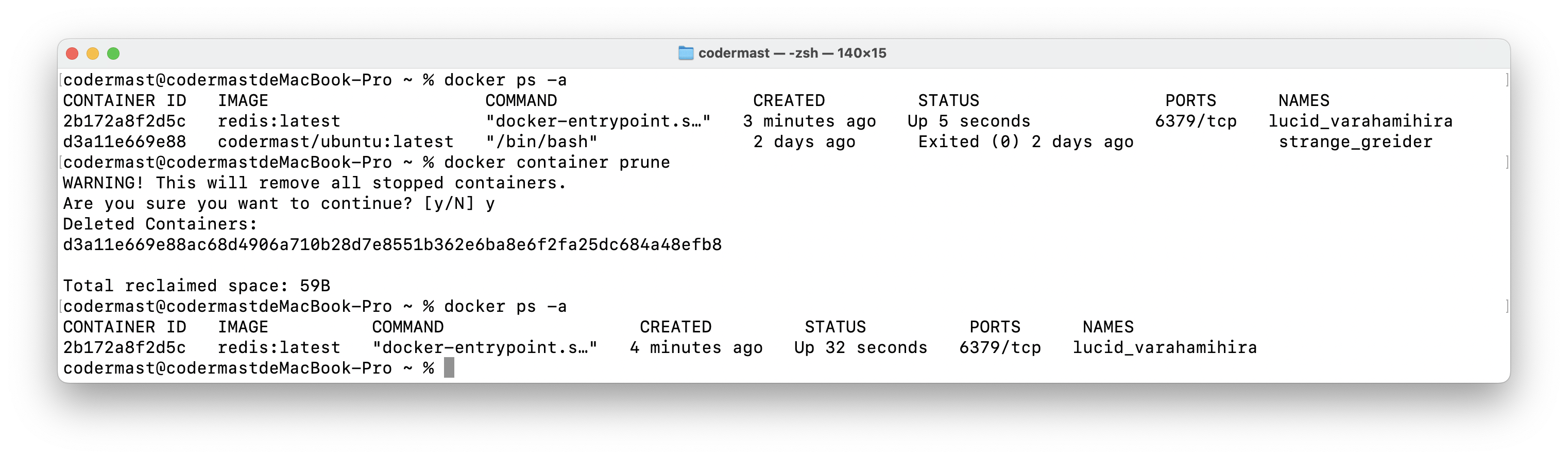 在容器停止运行后,并不会自动被删除,需要手动清除。该指令一次性清除所有的停止状态的容器。