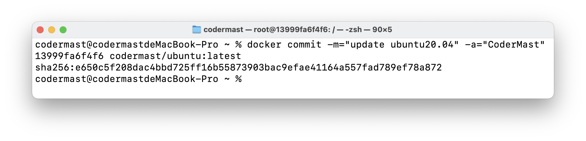 docker commit -m="update ubuntu20.04" -a="CoderMast" 13999fa6f4f6 codermast/ubuntu:latest