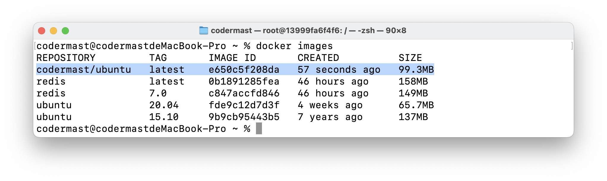 docker tag e650c5f208da codermast/ubuntu:v1- e650c5f208da:为镜像的 ID