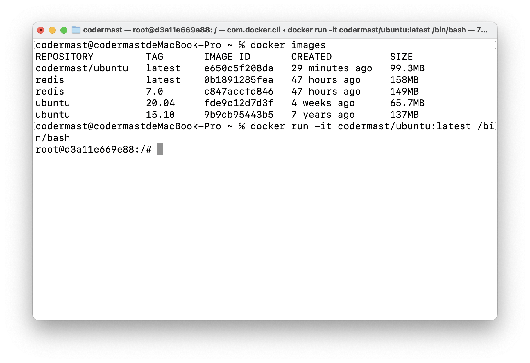docker run -it codermast/ubuntu:latest /bin/bash- -it 可以连写的,表示 -i -t