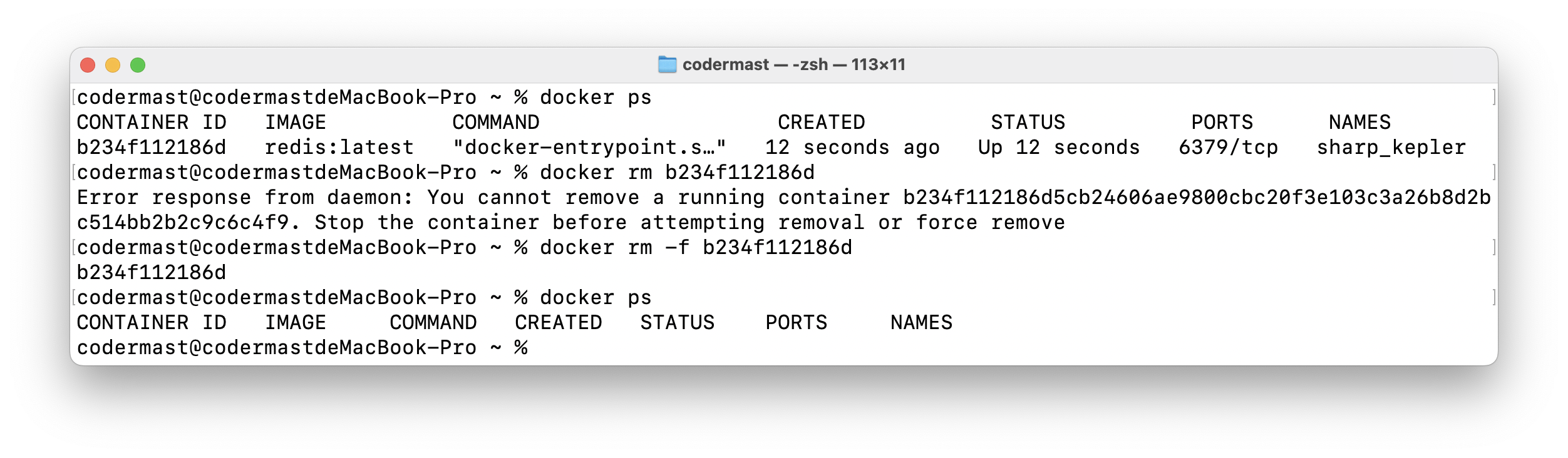 docker rm -f b234f112186d- b234f112186d:为 正在运行 Docker 容器的 ID