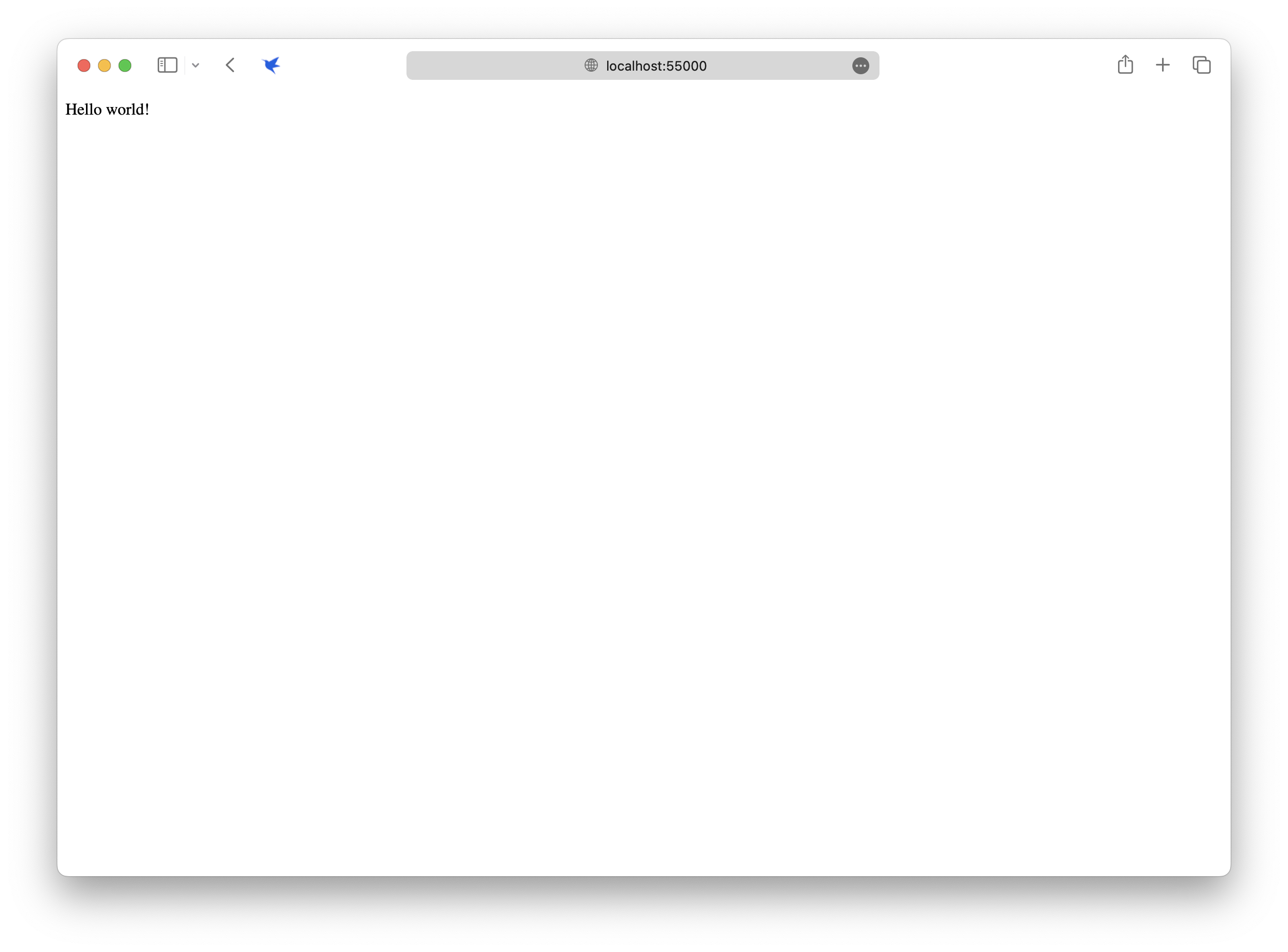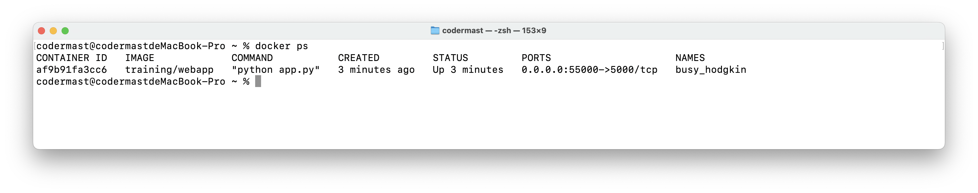 我们看到这里增加了端口的映射,0.0.0.0:55000->5000/tcp,即将本地 IP 的 55000 端口,映射到了该 Docker 容器中的 5000 端口,即我们在本地访问 55000 端口,即可访问该 Docker 容器。