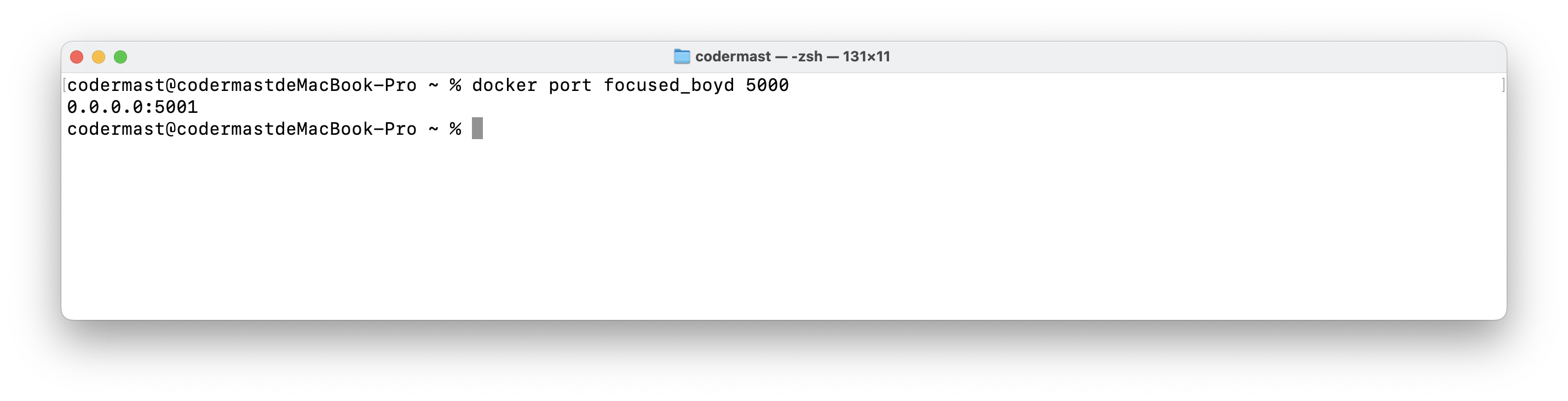 docker port focused_boyd 5000该指令即查看名为 focused_boyd 的 Docker 容器的 5000 端口映射到什么位置。
