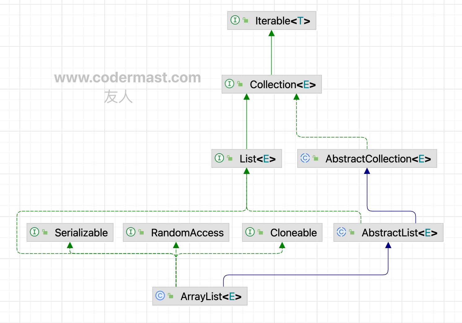 ArrayList 继承了 AbstractList ,并实现了 List 接口。