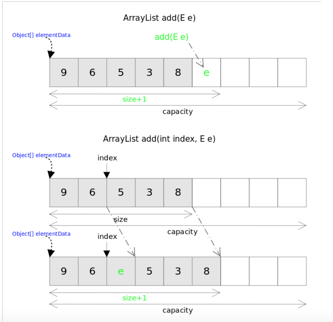 - 最后,将新数组设置为 ArrayList 的内部数组,以替代原来的数组。