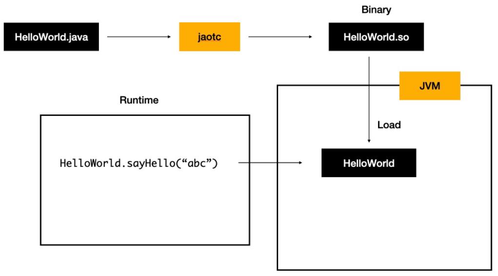 .java -> .class -> (使用jaotc编译工具) -> .so(程序函数库,即编译好的可以供其他程序使用的代码和数据)